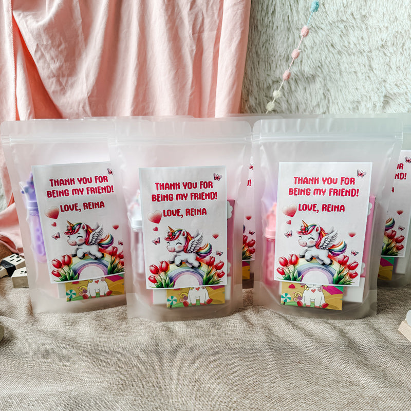 - Customized Ziplock Bag: Your convenience is our priority. The party packs come with a ziplock bag, ensuring easy storage and distribution. What's more, we've added a custom birthday sticker to make each pack even more special. Personalize it with your child's name and birthday message for an extra touch of love.