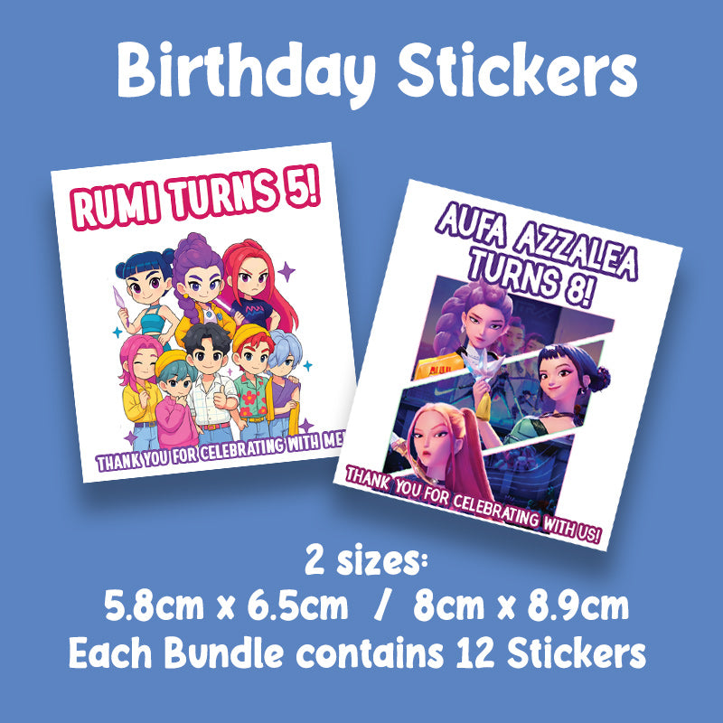 Personalised Birthday Stickers | K-pop Demon Hunter, Huntrix & Saja Boys Designs