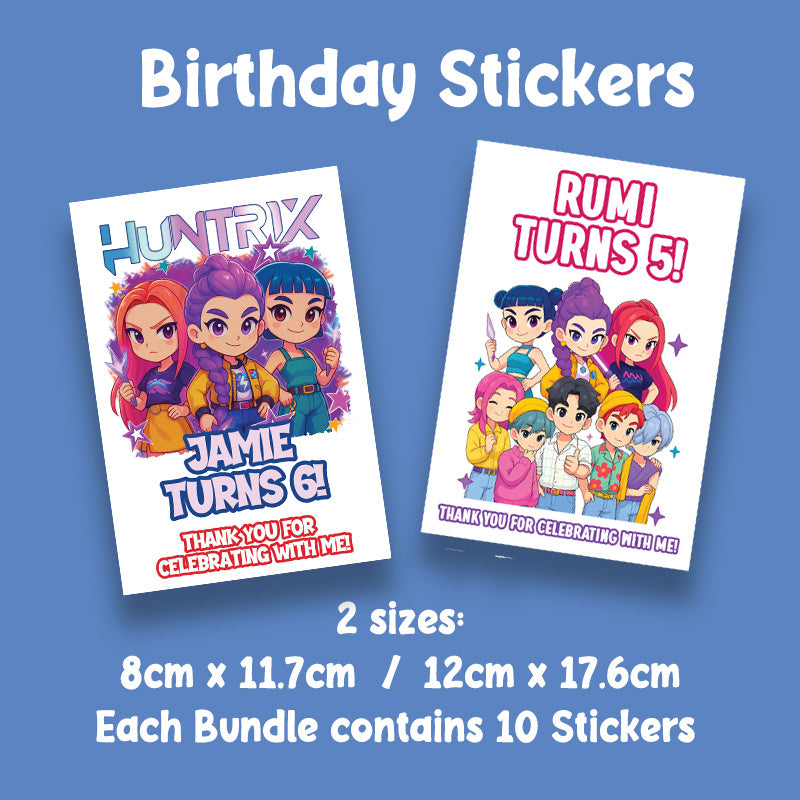 Personalised Birthday Stickers | K-pop Demon Hunter, Huntrix & Saja Boys Designs